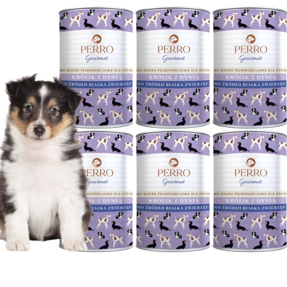 PERRO Gourmet JUNIOR Królik z dynią to pełnoporcjowa karma mokra o bezzbożowej i monobiałkowej formule, przeznaczona dla szczeniąt wszystkich ras. Receptura została opracowana przez dietetyków i wzbogacona o unikalną mieszankę ziół oraz dodatków typu superfoods, wspierających prawidłowy rozwój młodego psa.