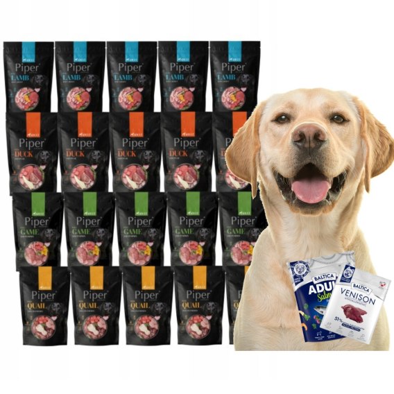 24 saszetY po 500 g pełnoporcjowej karmy Piper Animals to 12 kg solidnego, mięsnego pożywienia, które psy jedzą z apetytem do ostatniego kęsa.