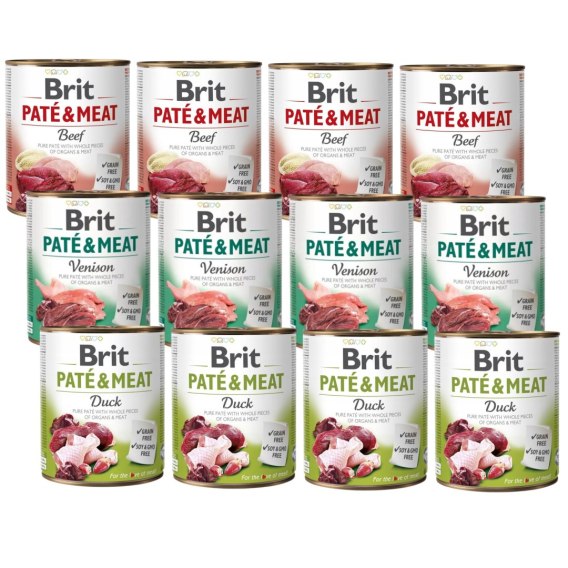 🥩 Brit Pate & Meat MIX 12 x 800 g - mokra karma dla psa (kaczka, wołowina, dziczyzna)